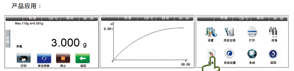 2、5寸高清智能触控显示屏,曲线实时动态分析,水分百分比/干重百分比/干重重量 直接显示;