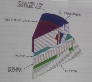 将试样放在一个金属环形平面测头和弹性衬垫之间,内环面和外环面与试样形成一个密封。在测量面两侧的压差作用下,气流在测量面和试样之间通过。通过比较流过测量面产生的压差与通过已知阻尼产生的压差来测定气流流速,以微米表示空气缝隙。