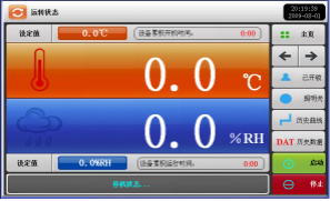 | 画面显示功能 | 温湿度设定(SV)实际(PV)值直接显示; 可显示执行程序号码、段次、剩余时间及循环次数,运转时间显示; 程序编辑以及图形曲线显示; 具单独程序编辑画面,每页可输入4个段次温湿度、时间; 定点或程序动作状态显示; 语言转换可以切换中文/英文; 5.7真彩显示屏幕; |